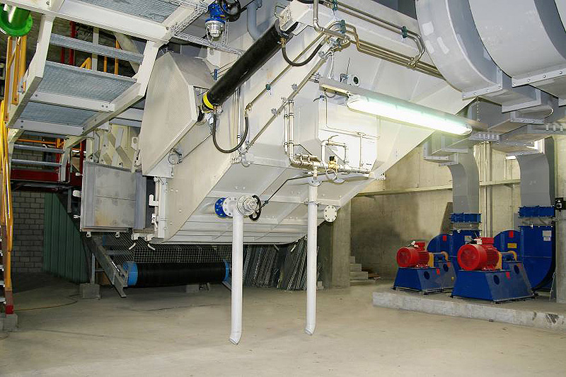 The ash discharger is a well proven design. The drive is made by two hydraulic cylinders attached to a pusher which transfer the slag out of the water bath. The internal surfaces are lined with changeable wear plates, in order that they can be replaced if necessary, during a routine maintenance period.